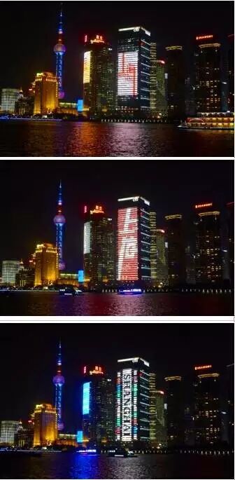 上海浦東花旗銀行大屏的運營團隊,開創了字體秀的跨界主題模式。以“我愛上海,I LOVE SH”為設計元素,用字體圖形的形式,通過LED大屏多媒體的動態形式展示。文字 動態的表述形式更具國際化與時尚感,傳遞了不同文化背景人群對上海這座城市的認知。